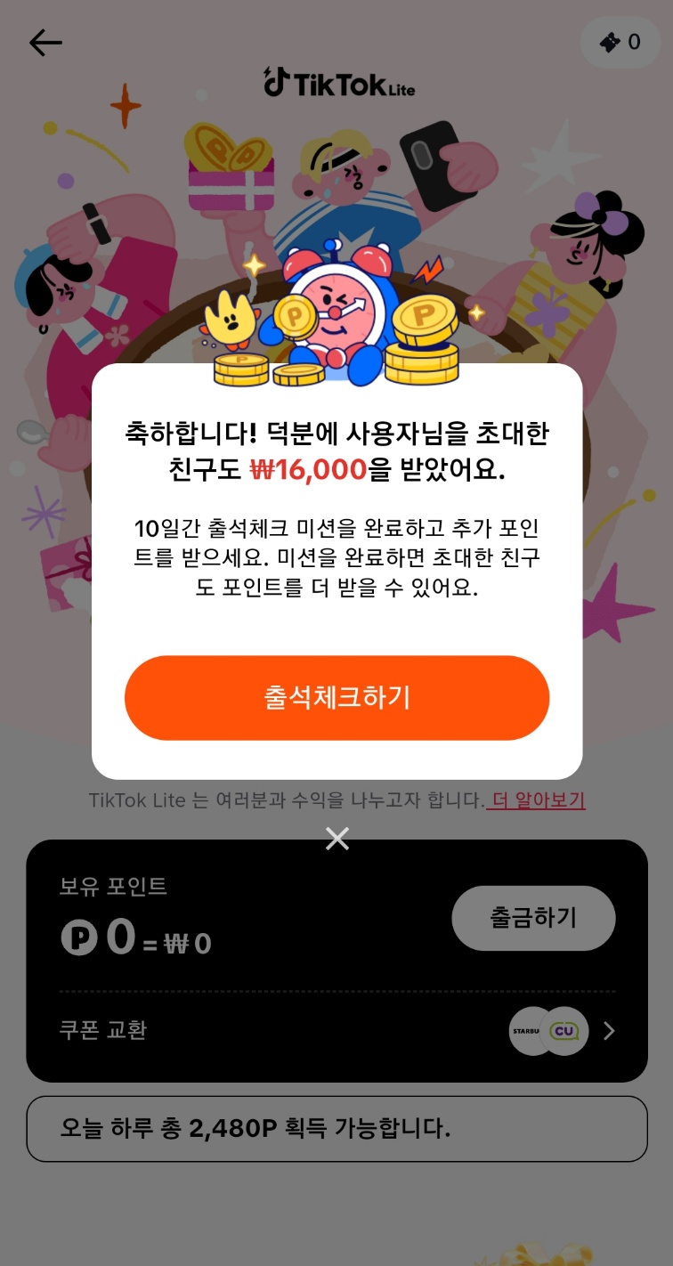 틱톡라이트 런칭 기념으로 아주 돈을 쏟아 붓고 있어서 아는 분들은 돈을 그냥 줍줍 합니다 틱톡라이트로 동영상도 보면서 친구 이웃들에게 전파하고 현금으로 바로 인출되는 새로운 경험을 하고 있습니다